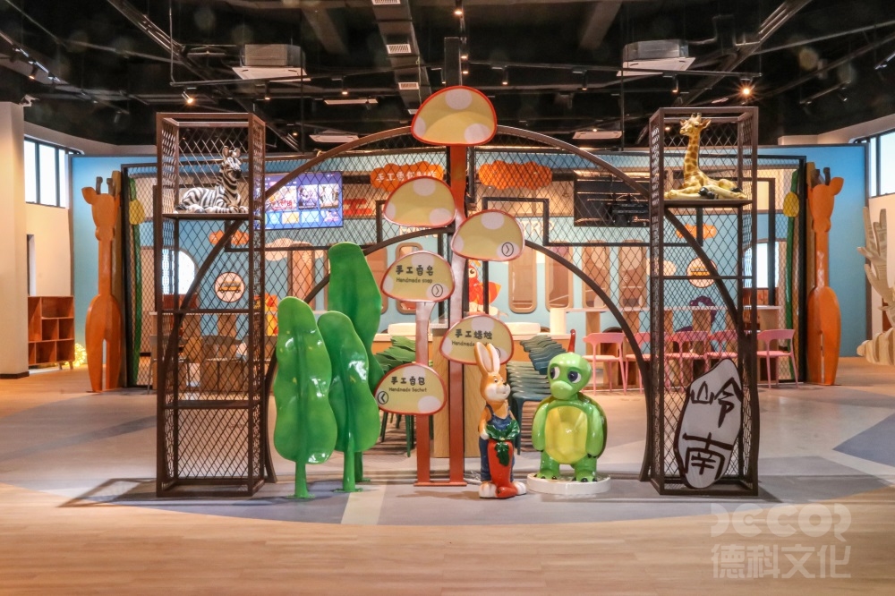 百草園外形像一朵五葉梅,綻放在嶺南大地綠野上,依山面水。德科設(shè)計人員根據(jù)中醫(yī)藥主題,設(shè)計了“神農(nóng)秘境”、“尚合堂”、“膳食館”、“五行養(yǎng)生堂”、“文創(chuàng)市集”、“DIY手作坊”、“六和堂”及“酷玩瓦舍”八個主題展廳。