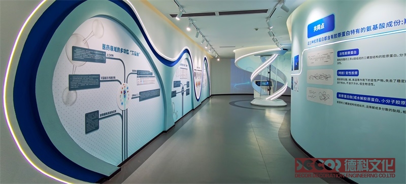 設(shè)計(jì)理念:膠原展覽館將圍繞“前沿科技”“民族產(chǎn)業(yè)”“美好生活”的主題概念,通過聲光電等形式,立體展現(xiàn)膠原蛋白的結(jié)構(gòu)功效與科技發(fā)展、核心成果與產(chǎn)業(yè)前景。