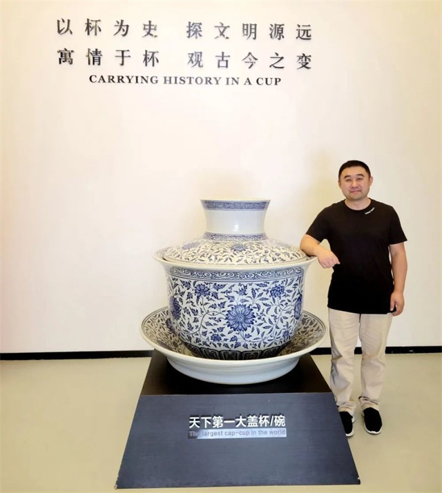 日前,記者走進杯子博物館,展廳門口醒目的“天下第一大蓋杯/碗”是在江西景德鎮(zhèn)歷時兩年燒制而成的,這是目前國內(nèi)已知的最大陶瓷蓋杯/碗。