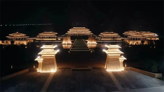 秦漢館以北斗七星中的搖光、開陽、玉衡、天權(quán)、天璣五星組成對稱布局,整體建筑既有中軸對稱的恢弘大氣,又兼具不對稱布局的自由氣息,豪放古拙、剛健質(zhì)樸的“大秦風”,給人以獨特的視覺感受和心靈震撼。