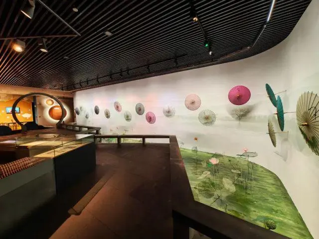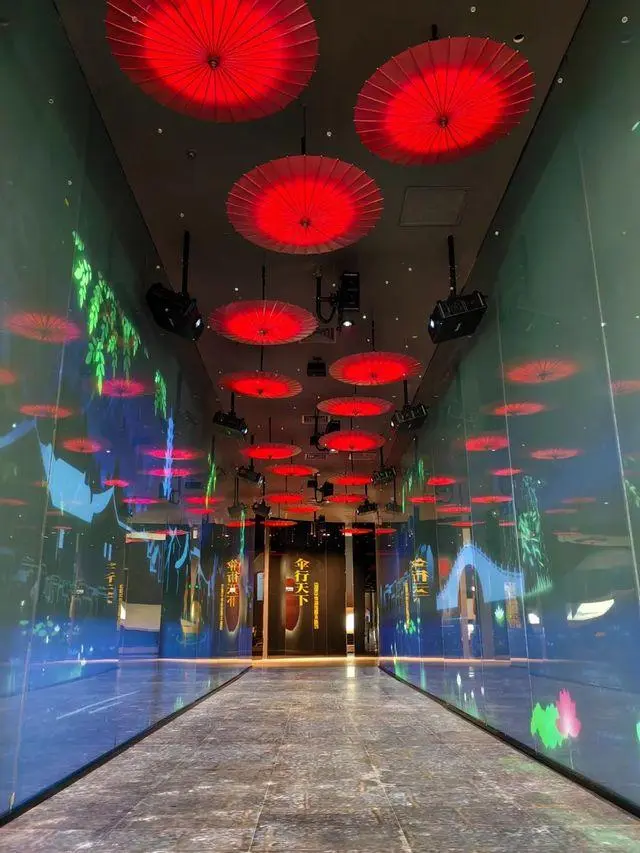 傘舞劇場傘舞劇場將原有的影院空間擴大,立體環(huán)繞播放傘舞視頻,展現(xiàn)江南水鄉(xiāng)細雨朦朧的秀美景色。大家可以在此區(qū)域休憩小坐、欣賞傘舞,感受傘的藝術之美。